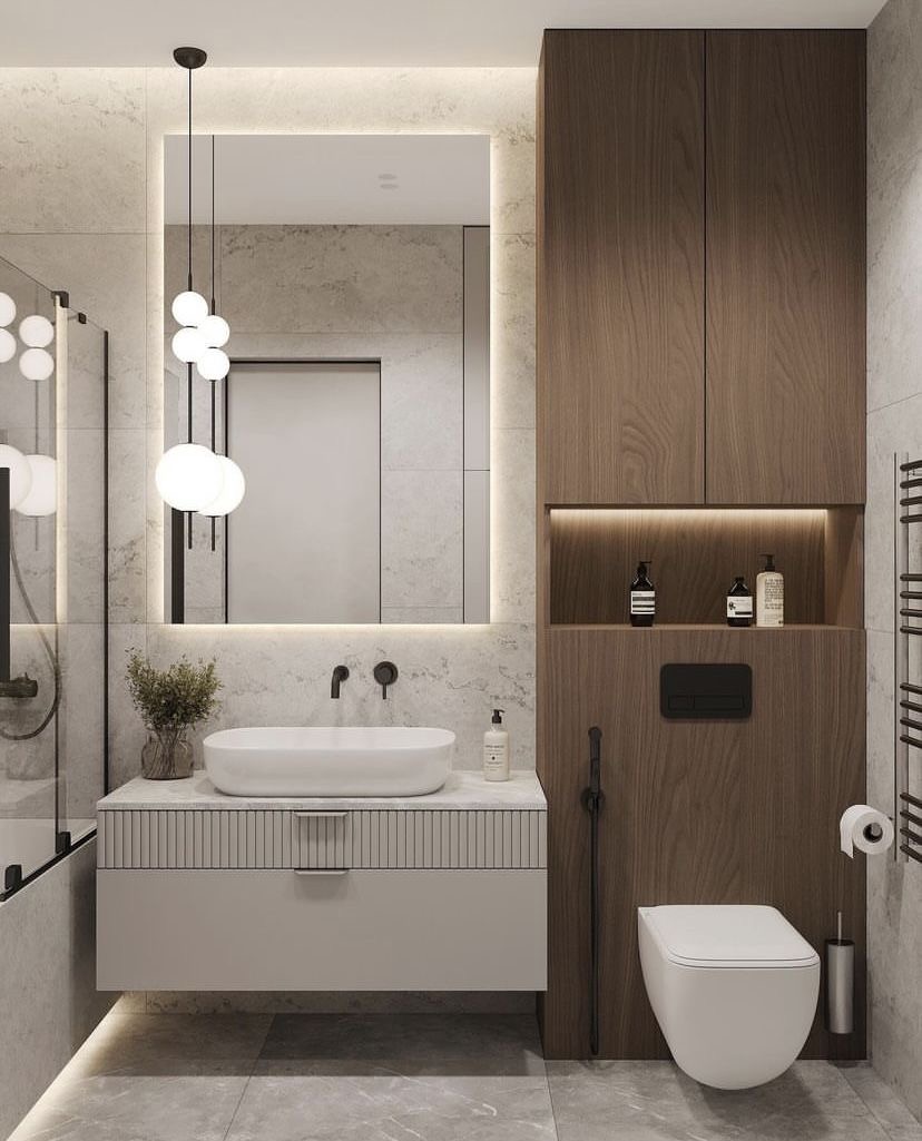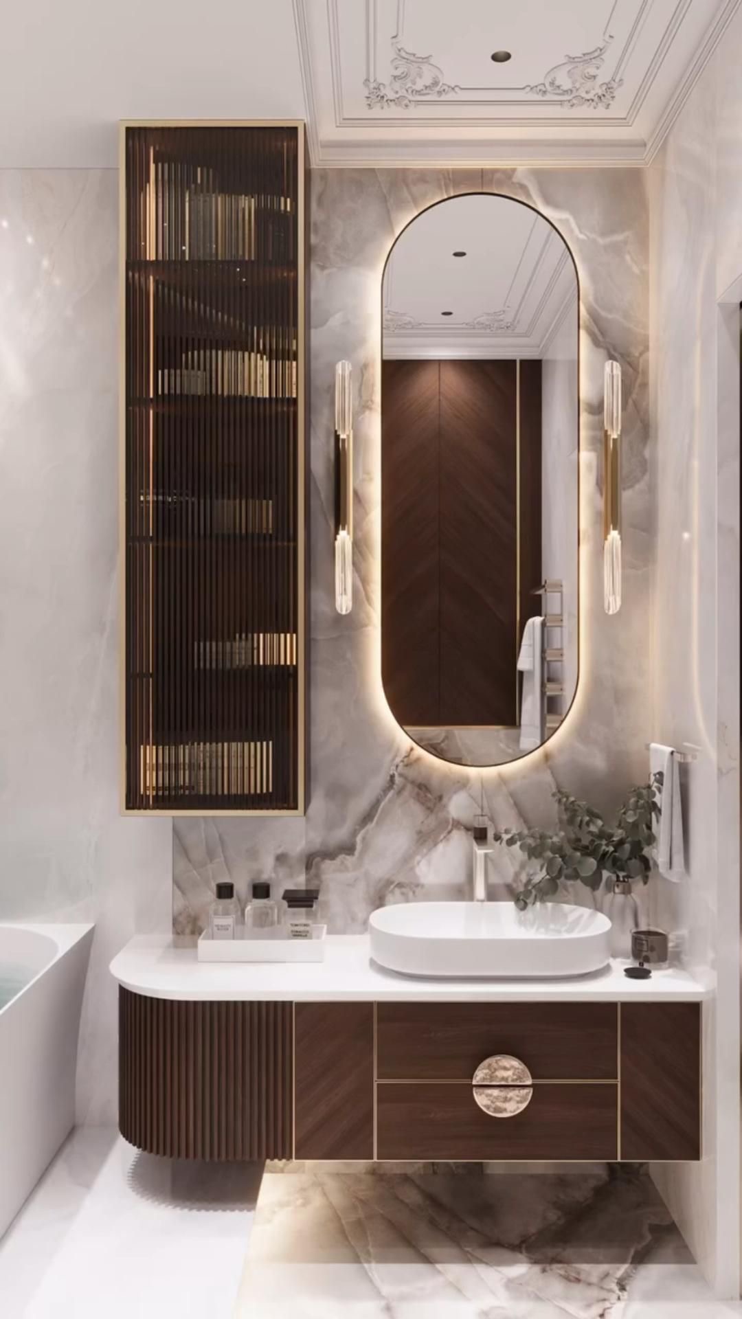 چوب طبیعی در روشویی کابینتی حس گرما و اصالت به فضا میبخشد.کد٠٣